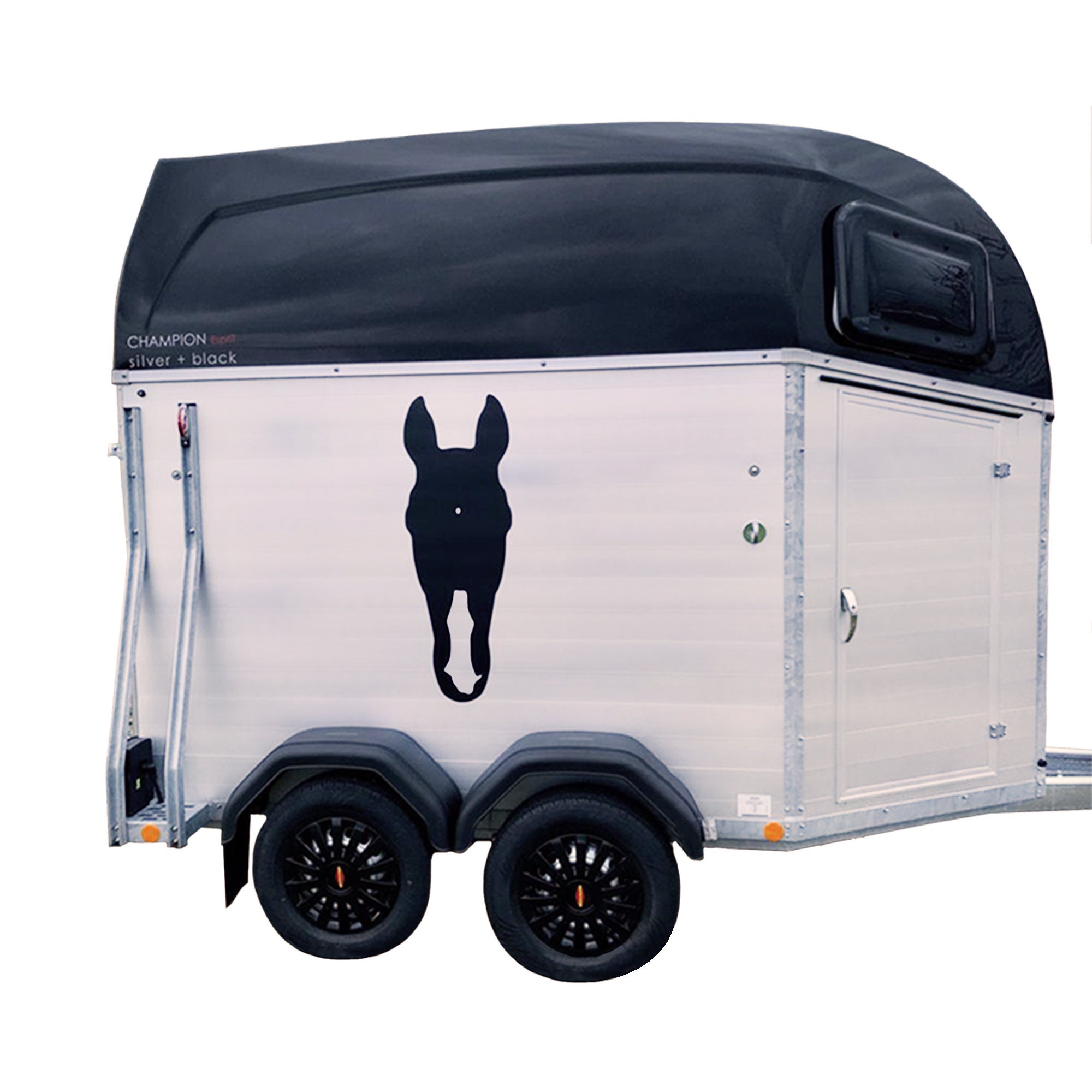 This sticker for your horse trailer allows you to immortalize your horse with its head shape and unique markings. Each sticker is designed by me based on a photo of your horse. The sticker is available in two sizes and suitable for outdoor use. The facial markings will be cut out, so the color of your trailer will show through.